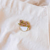 L'épinglette Tasse Fleurie ressemble à un petit bouquet versé dans une tasse : délicat, joyeux, et rempli de poésie.